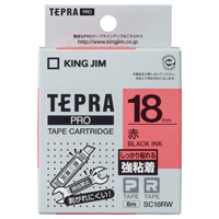 テプラPROテープカートリッジ 強粘着ラベル 赤に黒文字18mm幅×8m SC18RW