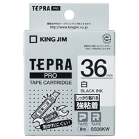 テプラPROテープカートリッジ 強粘着ラベル 白に黒文字36mm幅×8m SS36KW