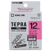 テプラPROテープカートリッジ 強粘着ラベル ピンクに黒文字 12mm幅 SC12PW
