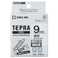 テプラPROテープカートリッジ 強粘着ラベル 透明に黒文字9mm幅×8m ST9KW