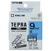 テプラPROテープカートリッジ 強粘着ラベル 青に黒文字 9mm幅×8m SC9BW