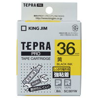 テプラPROテープカートリッジ 強粘着ラベル 黄に黒文字36mm幅×8m SC36YW