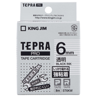 テプラPROテープカートリッジ 粘着ラベル 透明に黒文字 6mm幅×8m ST6KW