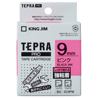 テプラPROテープカートリッジ 強粘着ラベル ピンクに黒文字 9mm幅 SC9PW