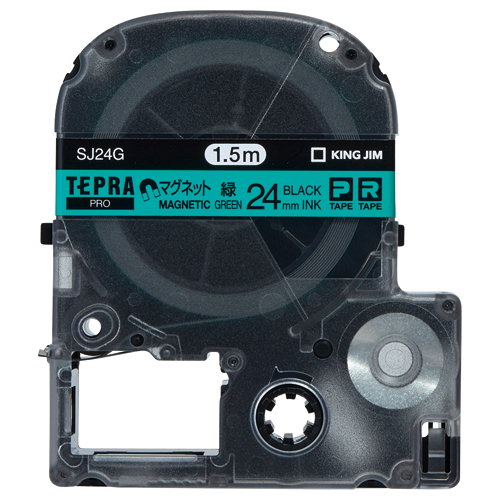 テプラPROテープカートリッジ マグネットテープ 緑に黒文字 24mm幅 SJ24G
