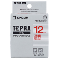 テプラPROテープカートリッジ 透明ラベル 透明に赤文字12mm幅×8m ST12R