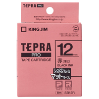 テプラPROテープカートリッジ マットラベル 赤に黒文字12mm幅×8m SB12R
