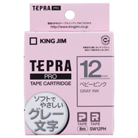 テプラPROテープカートリッジ (ソフト) ベビーピンクにグレー文字 SW12PH