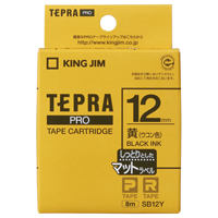 テプラPROテープカートリッジ マットラベル 黄に黒文字12mm幅×8m SB12Y