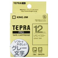 テプラPROテープカートリッジ (ソフト) レモンイエローにグレー文字 SW12YH