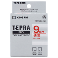 テプラPROテープカートリッジ 透明ラベル 透明に赤文字 9mm幅×8m ST9R