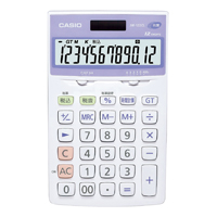 ●12桁表示 ●抗菌タイプ(SIAA登録モデル) ●早打ち対応 ●税計算機能 ●時間計算機能 ●計算状態表示 ●傾斜表示 ●ソーラー2電源 ●プラスチックキー ●ジャストサイズ ●スタンド付き ●サイズ:107×176×25mm ●質量:約145g ●電源:太陽電池+LR44×1 ●保証期間/1年