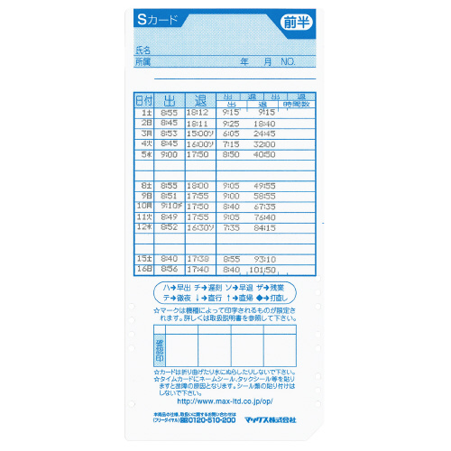 ●タイムカード/ER-Sカード、ER-UDカード