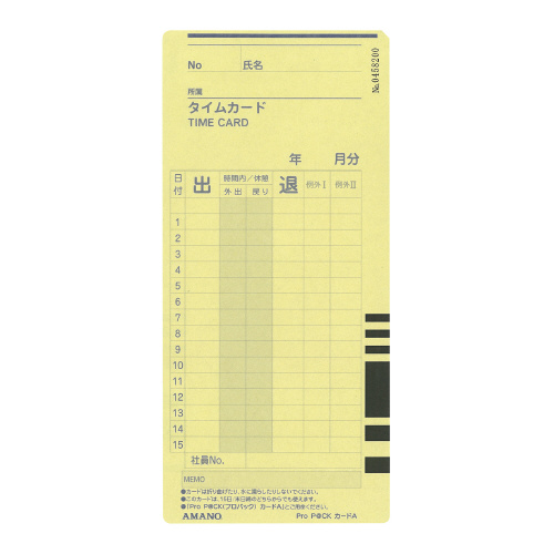 タイムカード 6欄印字 月末・15日締切 TIMEPACK6-Aカ-ド