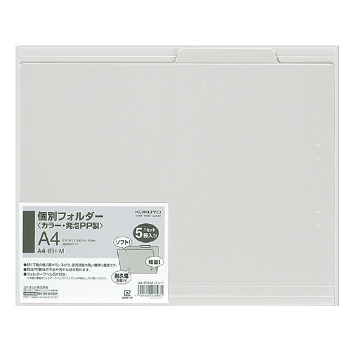 個別フォルダー(カラー・PP製) A4 グレー 5冊パック A4-IFH-M