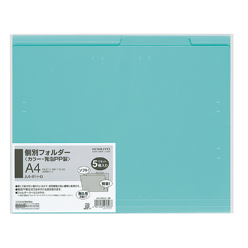 個別フォルダー(カラー・PP製) A4 緑 5冊パック A4-IFH-G