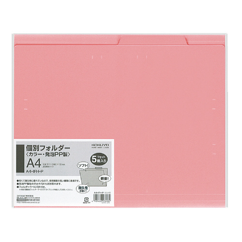 個別フォルダー(カラー・PP製) A4 ピンク 5冊パック A4-IFH-P