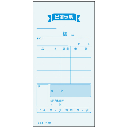 お会計票 出前伝票 134×66mm 50組 テ-255