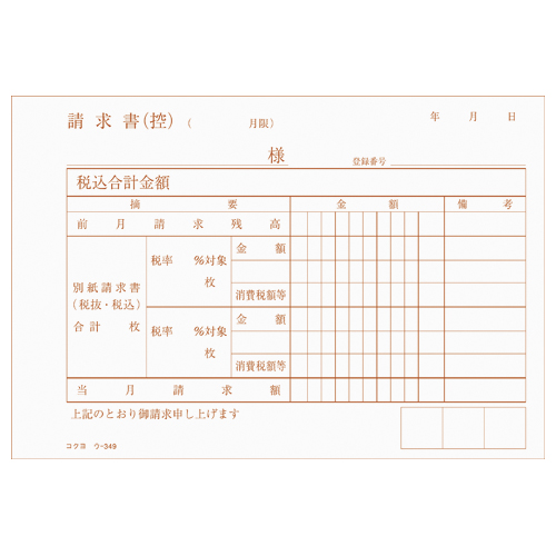 NC複写簿 合計請求書 A6横 50組 ウ-349