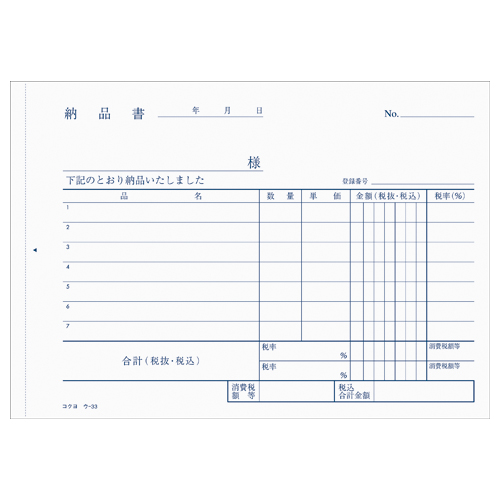 複写簿(カーボン紙必要) 3枚納品書 (請求書付き) B6横 7行 50組 ウ-33N