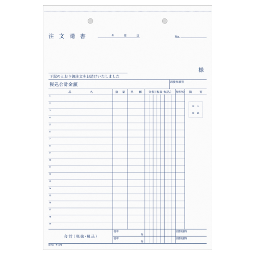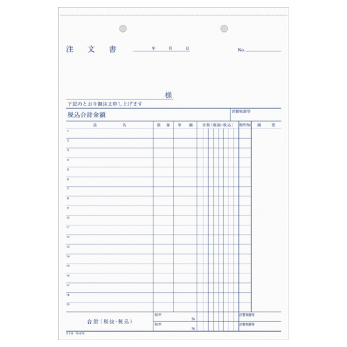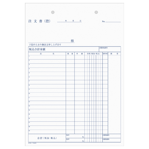 NC複写簿 3枚注文書(注文請書付) B5縦 2穴80mmピッチ19行 40組 ウ-370