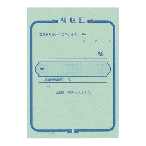 簡易領収証 B7縦 横書1色刷り 100枚 ウケ-200