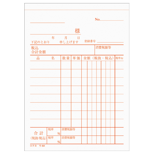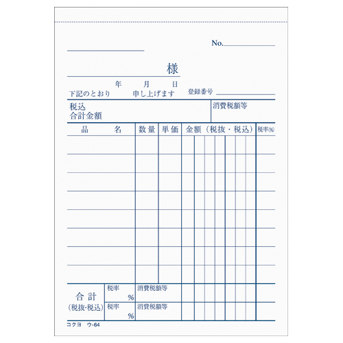 複写簿(カーボン紙必要) 3枚仕切書 B7縦 8行 50組 ウ-64N