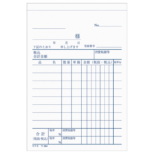 NC複写簿 3枚仕切書 B7縦 8行 50組 ウ-364