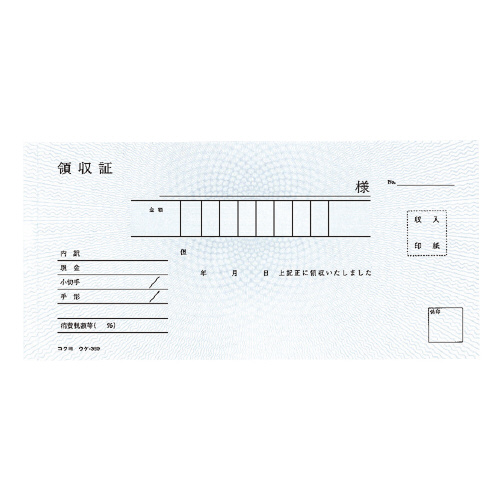 BC複写領収証(スポットタイプ) 小切手判横 2色刷 50組 ウケ-390