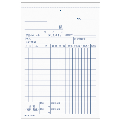 NC複写簿 仕切書 A6縦 10行 50組 ウ-340