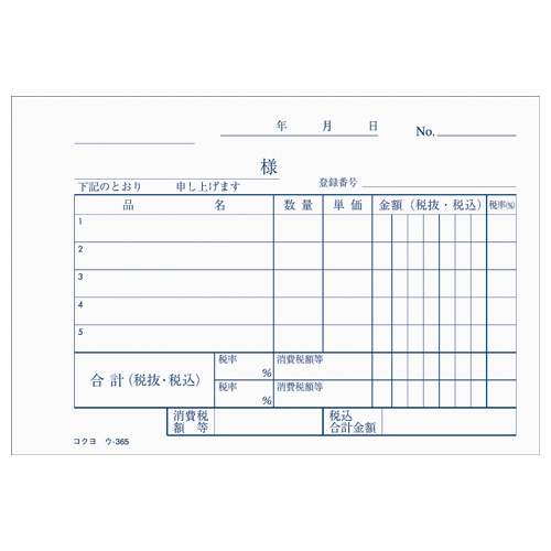 NC複写簿 3枚仕切書 B7横 5行 50組 ウ-365