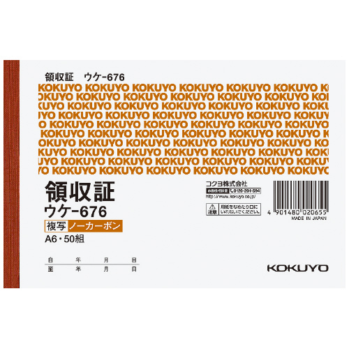 NC複写領収証 A6横 2色刷50組 ウケ-676