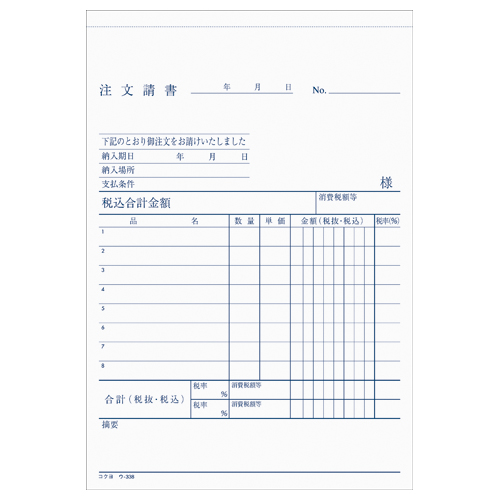 NC複写簿 3枚注文書(注文請書付) B6縦 2穴80mmピッチ 8行 50組 ウ-338