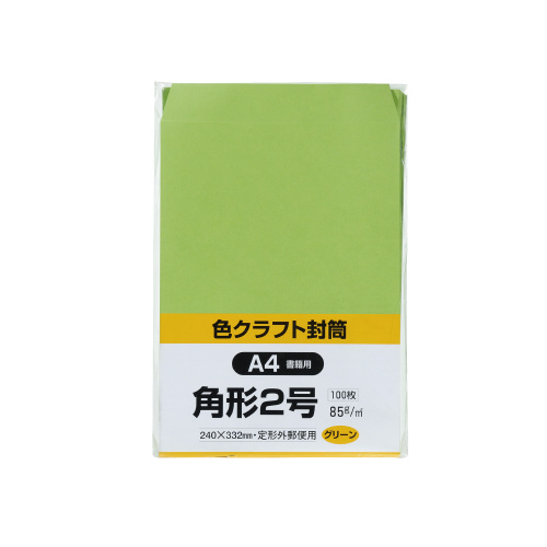 カラークラフト封筒 角2 グリーン 100枚入 K2C85GE