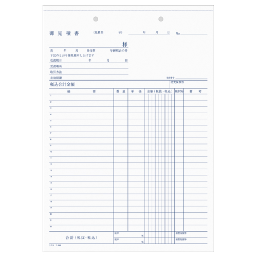 NC複写簿 見積書 A4縦 2穴80mmピッチ12行 40組 ウ-386
