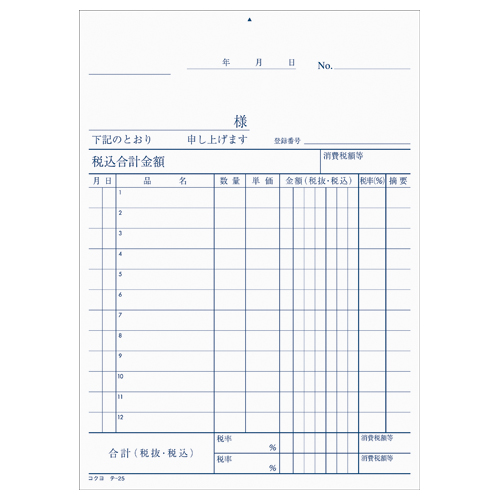 伝票 仕切書 B6縦 12行 100枚 テ-25N