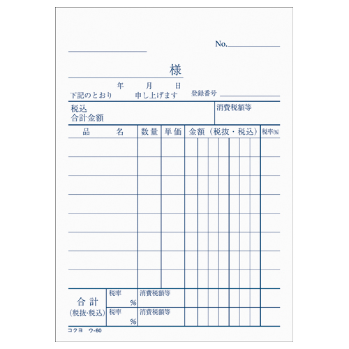 複写簿(カーボン紙必要) 仕切書 B7縦 8行 50組 ウ-60N