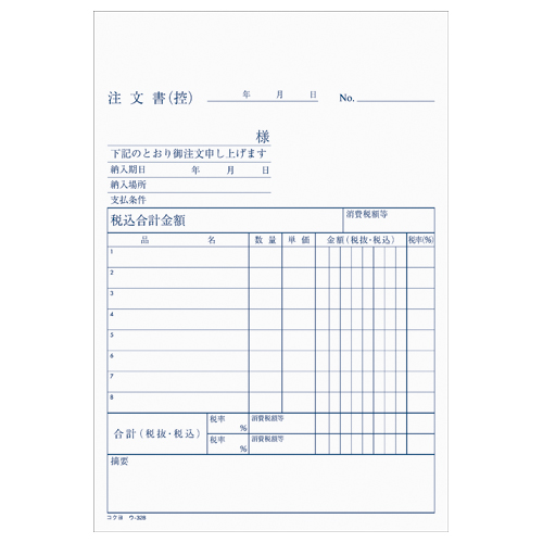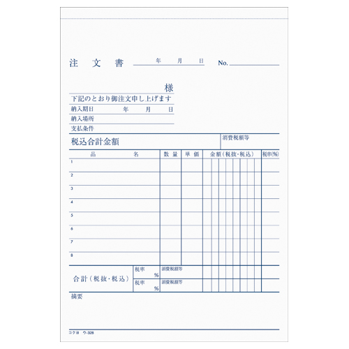 NC複写簿 注文書(明細記入欄付) B6縦 2穴80mmピッチ 8行 50組 ウ-328