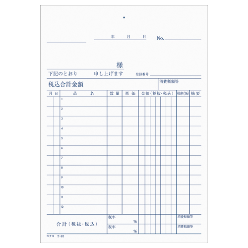 複写簿(カーボン紙必要) 仕切書 B6縦 12行 50組 ウ-20N