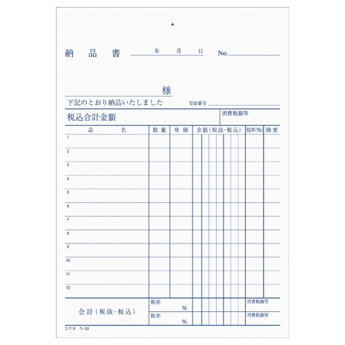 複写簿(カーボン紙必要) 3枚納品書 (請求書付き) B6縦 12行 50組 ウ-32N