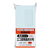 ●グラシン窓なので、そのままリサイクル可能 ●A4三つ折りぴったりサイズ ●長形6号 ●サイズ/110×220mm ●ブルー ●紙厚80g/平方メートル ●100枚入 ●テープ付き ●マド寸法/45×90mm ●センター貼り ●古紙配合紙 ●窓/グラシン紙