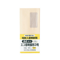 ●中身が透けない裏地紋入り窓付き封筒 ●窓部は分別せずに処分できる環境対応のグラシン紙を使用 ●長形3号 ●サイズ/120×235mm ●クラフト ●紙厚70g/平方メートル ●100枚入り ●テープ付 ●マド寸法/45×90mm ●センター貼り ●古紙パルプ配合率40% ●窓/グラシン紙