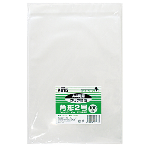 クリア封筒 テープ付き 角2 100枚入 CFK2Q100