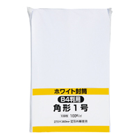 ●角形1号 ●サイズ/270×382mm ●紙厚100g/平方メートル ●100枚入り ●〒枠無 ●センター貼り ●紙質/白封筒用紙(ケント)