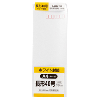 ●長形40号 ●サイズ/90×225mm ●紙厚70g/平方メートル ●100枚入り ●〒枠付 ●サイド貼り ●紙質/白封筒用紙(ケント)