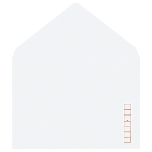 ●洋形2号 ●サイズ/162×114mm ●紙厚125g/平方メートル ●100枚入り ●〒枠付 ●ダイヤ貼り ●アラビアのり付 ●紙質/白封筒用紙(ケント)
