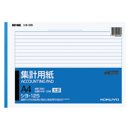 集計用紙(太罫) A4横 横罫幅8.5mm20行 50枚 シヨ-125