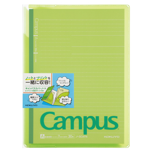 キャンパスカバーノート <プリント収容ポケット付き>グリーン ノ-623A-G