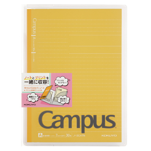 キャンパスカバーノート <プリント収容ポケット付き>イエロー ノ-623A-Y