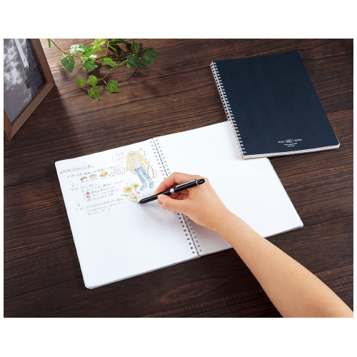 ●平らに開くので書き込みやすい、平らに折り返せるので狭い場所でも心地よく使える、といったリングノートのよさはそのままに、書くときリングに手が当たっても気にせず端まで美しく書ける、これからの新定番ノートです。